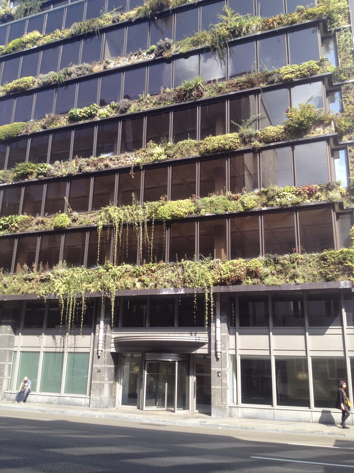 I love the experiments in architecture and the people teeming about. I snap a few photos. One building is windows surrounded, not by brick or concrete, but by green plants.